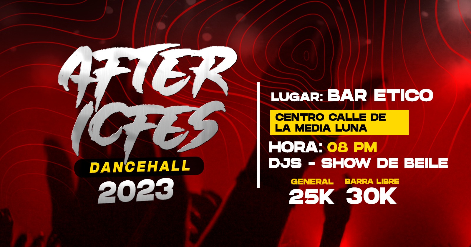 25 Mil pesos ( Acceso general)30 Mil con Barra libre ( Toma toda la noche coctel y tragos de guaro)Valor reserva de muebles 40kOpen: 08 pm(Acceso zona vip: 10k adicional al pago de tu acceso) @yohannprzdj ( Dj Residente)Compra tus entradas desde ya al 3005009172