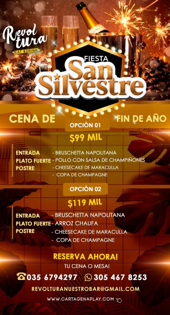 Despide el año en nuestra cena de san silvestre en Revoltura Cartagena!