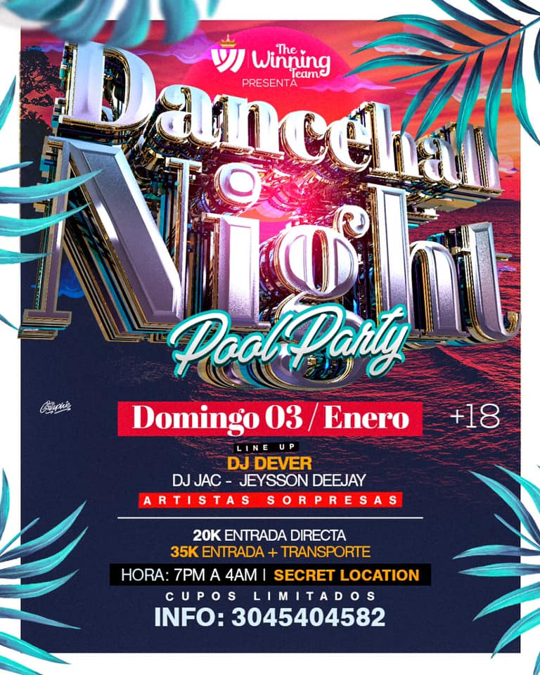 Después de casi 9 largos meses sin vernos.. NO podemos empezar el año 2021 sin gozarnos una buena fiesta + buena música + tus djs favoritos al estilo passa passa ¡DANCEHALL NIGHT pool party! | DOMINGO 03 de ENERO.Cupos Limitados : 304-540-4582!