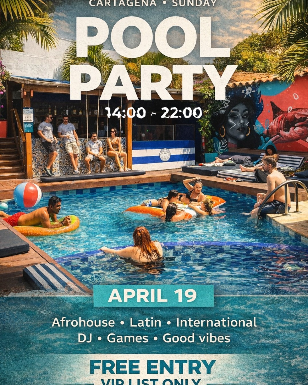 Pool party vibes DJ Juegos, Stand de ropa Artistas en vivo