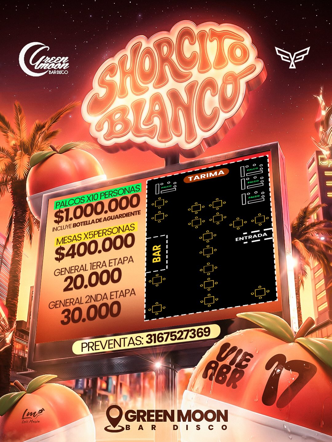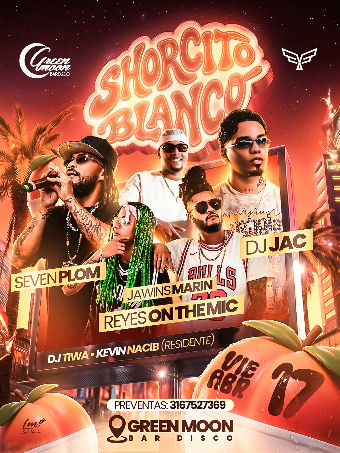 Este viernes 17 nos vemos en Green Moon para la fiesta del Shorcito Blanco. ⚪️ 🍎 Con un lineup de lujo: 🎙️ SEVEN PLOM | JAWINS MARIN | REYES ON THE MIC 🎧 DJ JAC | DJ TIWA | KEVIN NACIB 📍 Green Moon Bar Disco 📲 Preventas al: 3167527369 ¡No dejes que te lo cuenten! 🚀