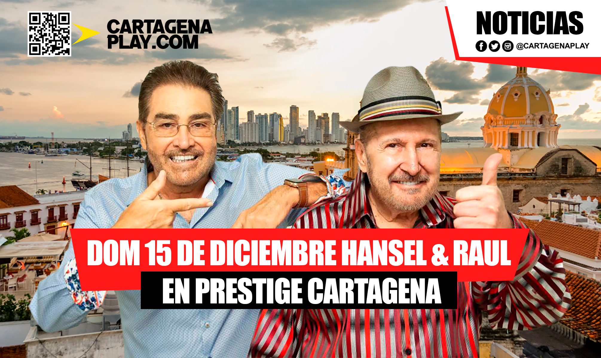 Hansel y Raúl los reyes de la charanga llegan este próximo domingo 15 de diciembre a la discoteca Prestige, un club de alta gama en Cartagena, para el gran súper concierto de fin de año. La salsa se apodera de la noche con un evento único en Prestige, la discoteca más destacada del momento. La ciudad será testigo de un espectáculo sin precedentes con la presentación en vivo de los músicos cubanos, dos leyendas que prometen una noche llena de energía, sabor y buena música. Con éxitos que han marcado generaciones y su inconfundible estilo, Hansel y Raúl pondrán a bailar a todo el público en un concierto diseñado para verdaderos amantes del género. Canciones como ” Mentira” “Ayer” “Soy” resonarán en un ambiente exclusivo, con el sello de calidad y estilo que solo Prestige puede ofrecer. Detalles del evento: Lugar: Discoteca Prestige, Cartagena Fecha: 15 de diciembre Hora: 8 p.m. apertura