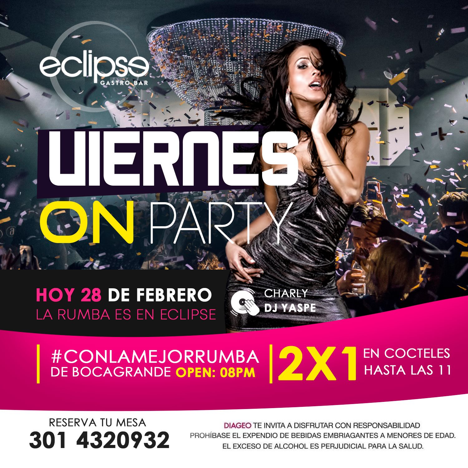 Disfruta HOY VIERNES de la rumba de @eclipsegastrobar Mezclando en vivo: Dj charly Promociòn: 2×1 en cocteles & no cover (Hasta las 11 pm) Open: 08 Pm