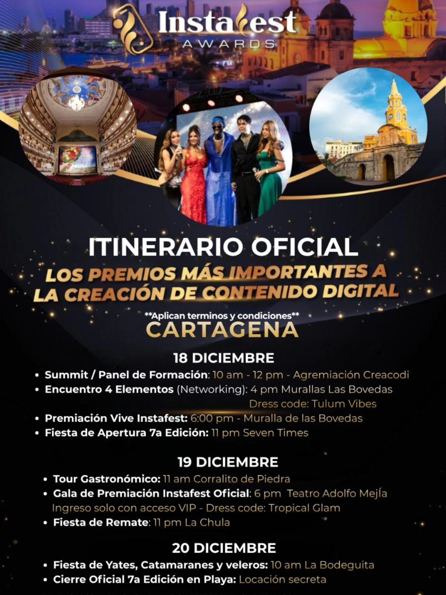 – Gala de la séptima edición de los Premios InstaFest en el Teatro Adolfo Mejía (ingreso con acceso VIP, código de etiqueta: Tropical Glam): “La noche de los ganadores”