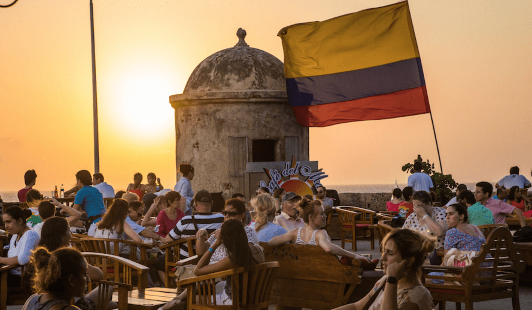 Café Del Mar es uno de los lugares más populares de Cartagena. Especialmente cuando llega el momento de ver la puesta de sol. Ubicado en lo alto de la muralla de la ciudad, este bar / restaurante ofrece una vista espectacular del océano. Dependiendo de la noche, escuchará sonidos de su DJ de deep house melódico y, con frecuencia, una actuación de saxofón en vivo con melodías relajantes que acompañan a las hermosas puestas de sol. Tienen un extenso menú de excelentes bebidas y comida. Después del anochecer, los fines de semana, hay un espectáculo de fuegos artificiales en dirección a Bocagrande, perfectamente visible desde Café Del Mar. Tenga en cuenta que su menú es más caro. Café Del Mar, siendo una de las mayores atracciones de Cartagena, se llena durante las horas del atardecer. Siempre se recomienda hacer una reserva aquí.