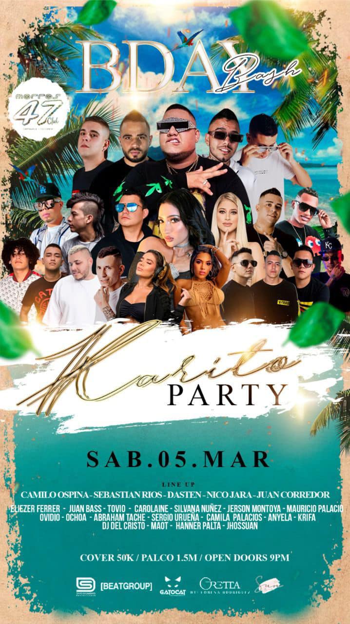 Esta noche Cartagena baila en la sala de @morros47club @beatgroupcolombia te presenta B-DAY BASH KARITO celebramos la vida de una de la djs más queridas por todos en heroica. @carolinedj_ junto a ella más de 20 djs que sin duda lo dejaran todo el la pista de baile para hacer de esta una celebración inolvidable De parte de la famila Morros 47 un Feliz cumpleaños y que cumplas muchos más, éxitos y miles de bendiciones siempre para ti