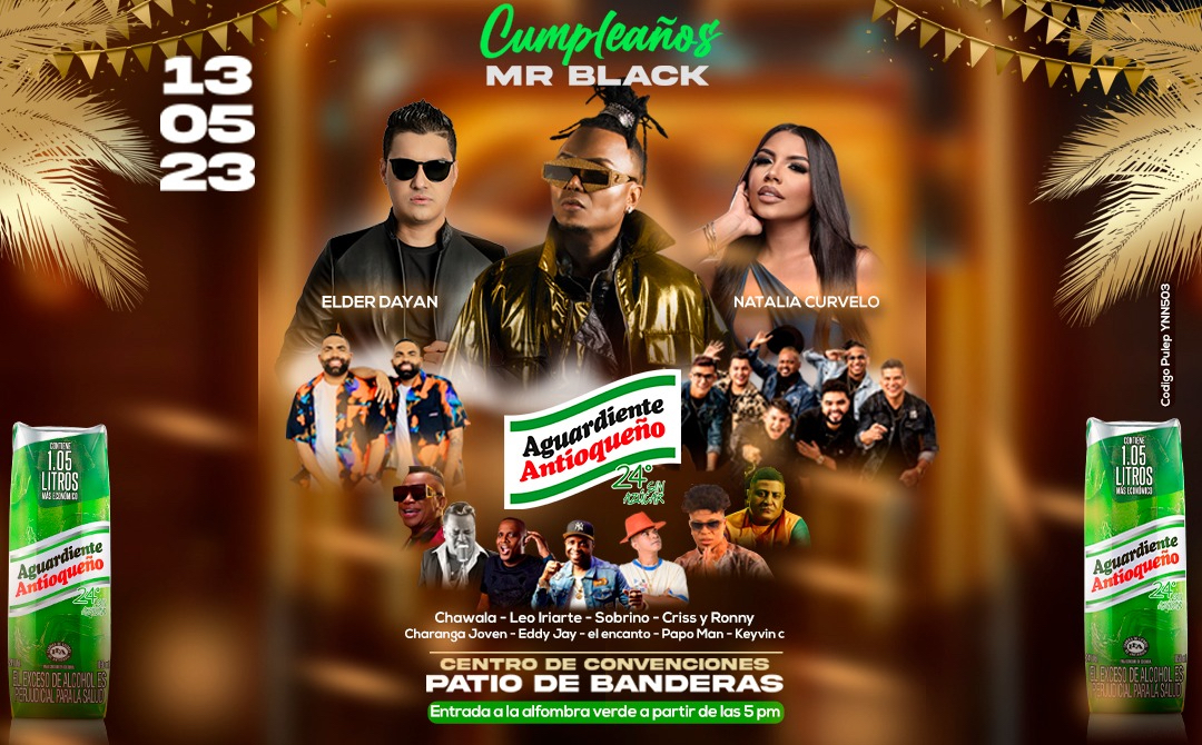 Cartagena se prepara para celebrar la vida del presidente del género MR BLACK, una noche sin presentes que se llevará a cabo el sábado 13 de mayo en el patio de banderas del centro de convenciones Julio Cesar Turbay Ayala. Con mucha emoción Mr Black organiza este concierto para disfrutar de un nuevo año mas de mi vida, una celebración en donde contara con la asistencia de sus amigos artistas los cuales son; Elder Dayan, Natalia Curvelo, Criss & Ronny, Charanga Joven, Eddy Jay, El