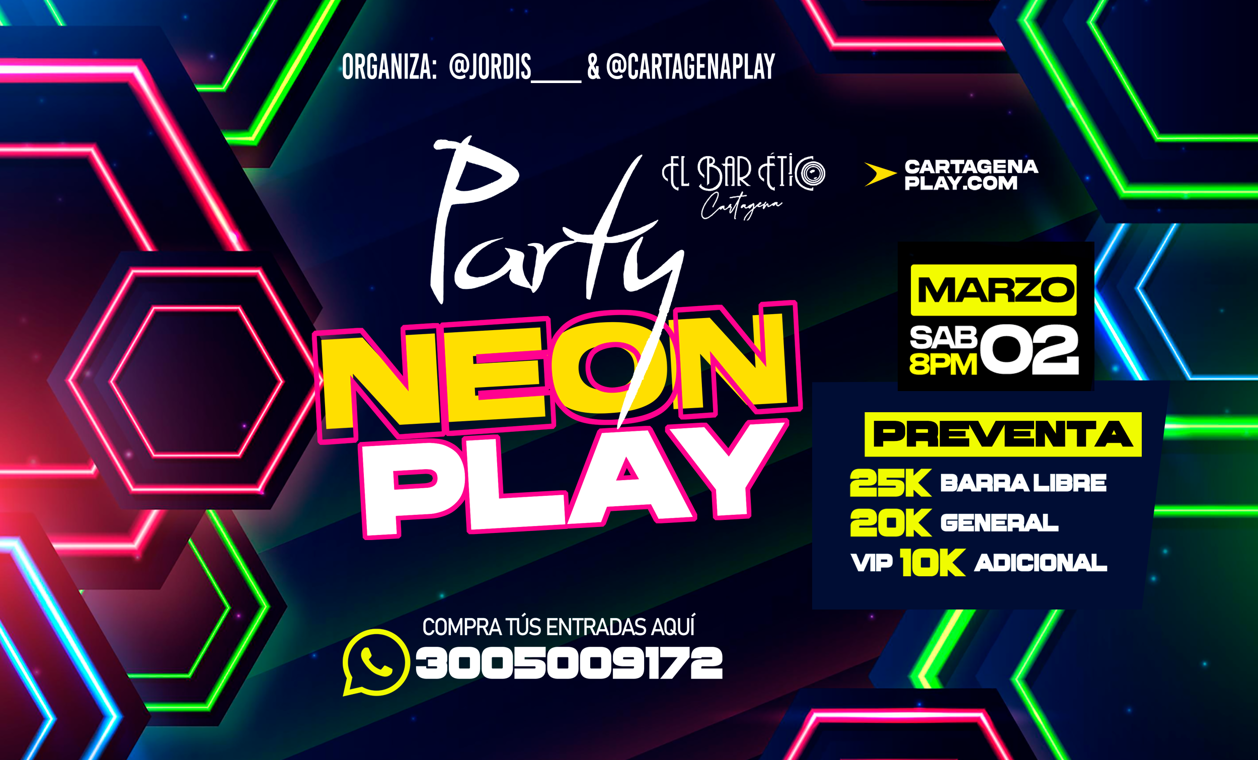 La fiesta de Neón + Grande de Cartagena será en @elbar_etico Organiza: @cartagenaplay