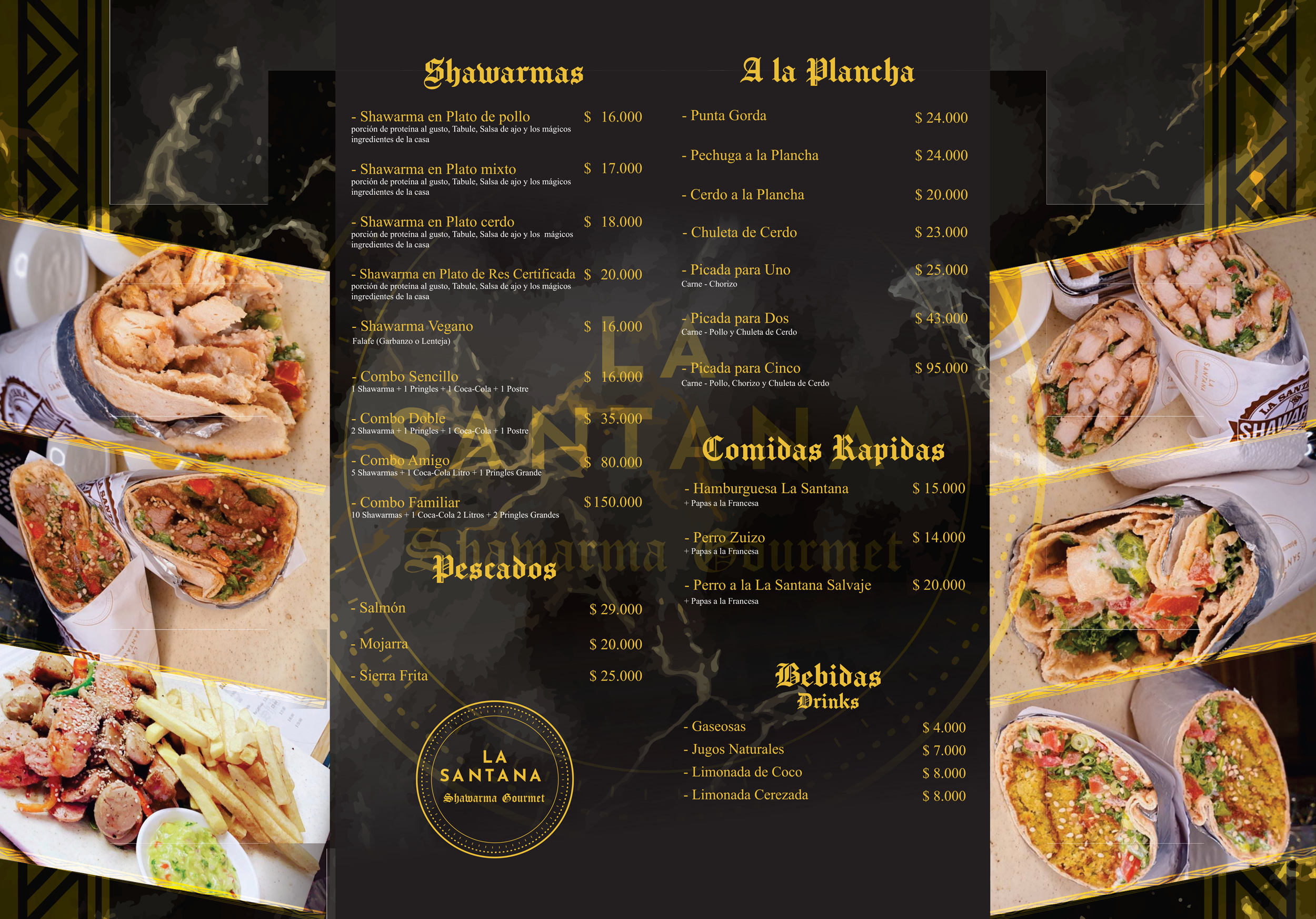 La Santana restaurante bar, ubicado en la calle larga del barrio getsemani, un sitio especializado en shawarmas, también ofrecen en su menú almuerzos ejecutivos, y variedad de platos a la carta, un lugar acogedor idela para comer y tomar unos tragos.