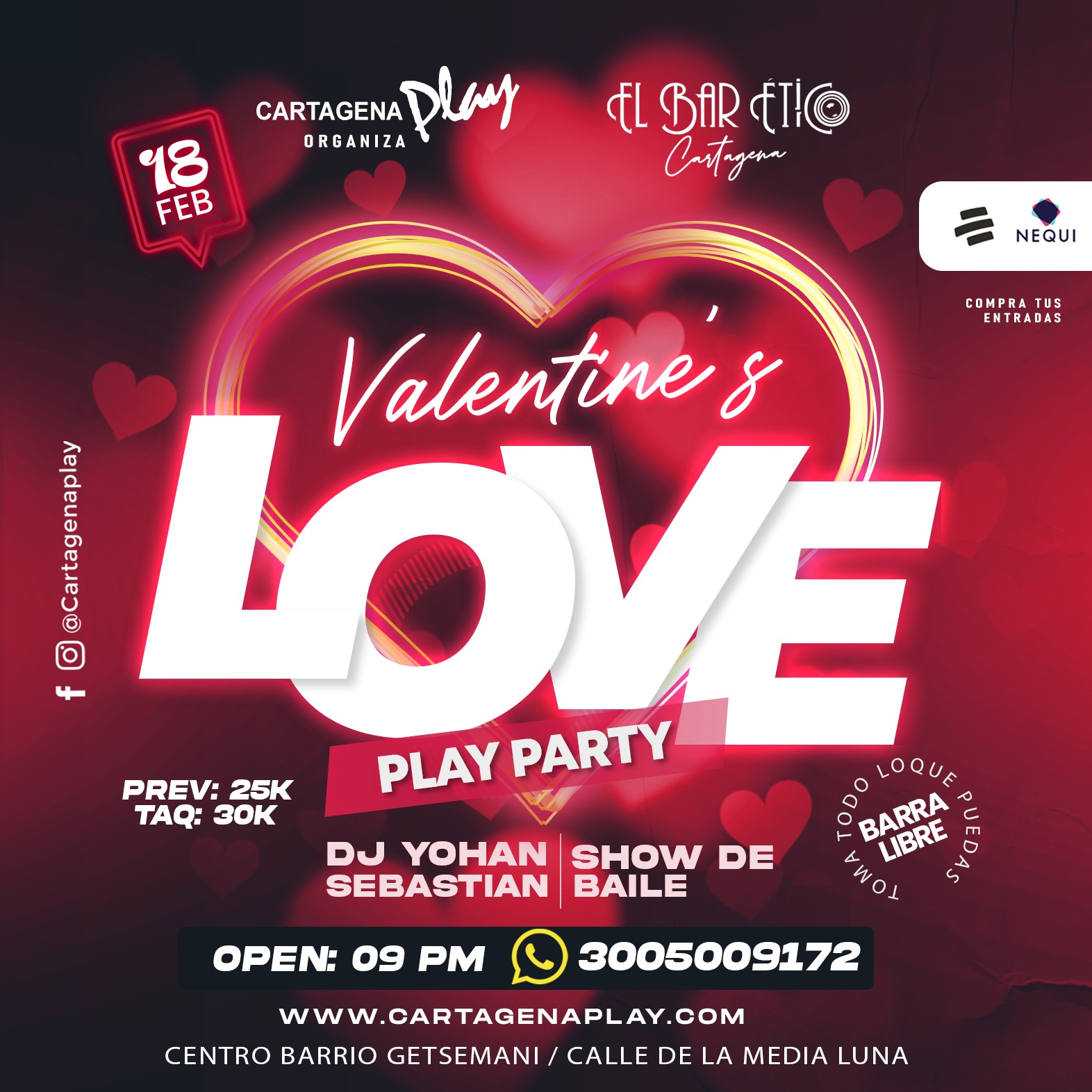 San valentin play party // Una fiesta para enamorados … fecha / Sab 18 de febrero en al discoteca el Bar etico