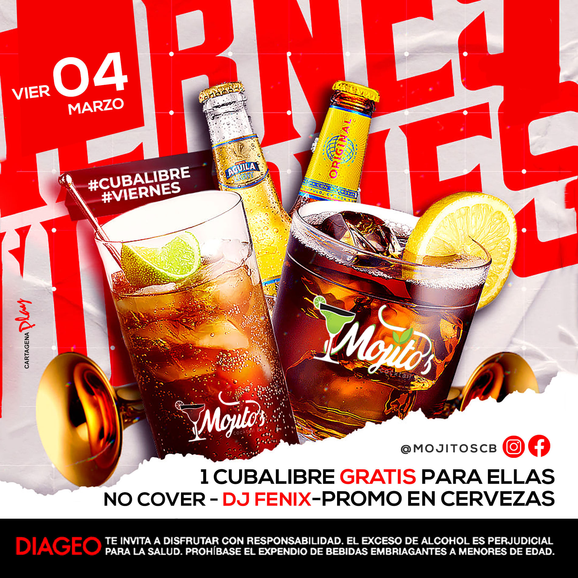 Viernes de Mujeres ON en @Mojitoscb Cuba libre para ellas (Gratis) Hasta las 11 Pm Promoción en licores y cervezas![]()