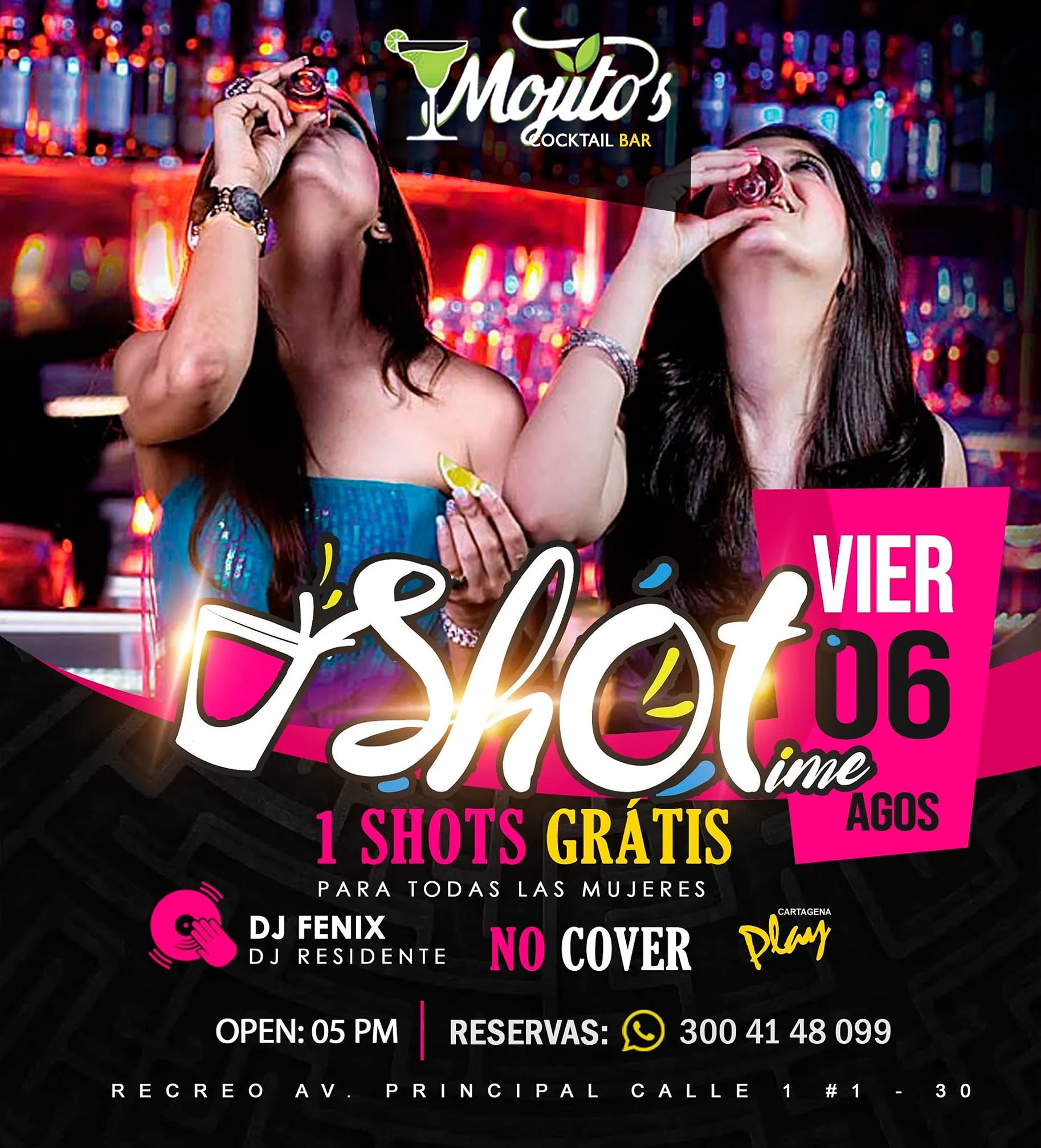 Hoy Viernes en Mojitos Cocktail-Bar    Shots Gratis para todas las mujeres!